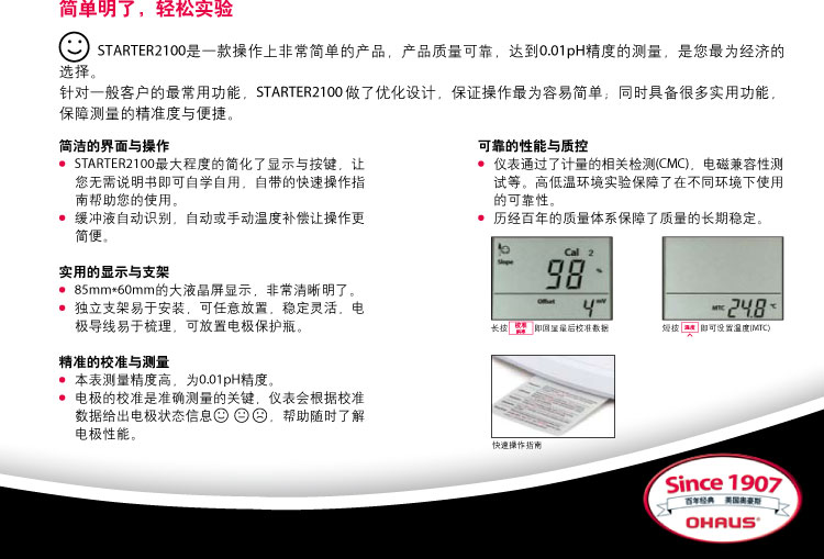 奧豪斯實(shí)驗(yàn)室pH計(jì)STARTER 2100/3C pro酸度計(jì)PH計(jì)產(chǎn)品介紹