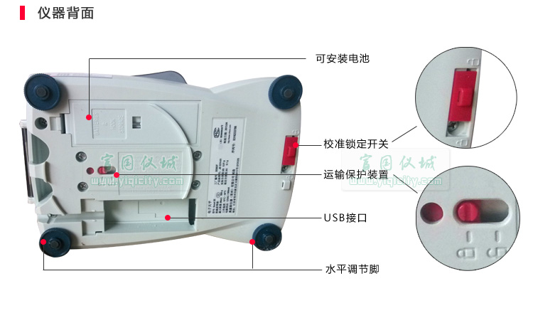 3.前置式水平調節泡-方便操作者對天平進行水平調節