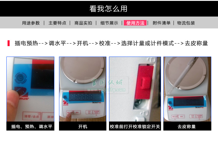 2.密度稱量-用戶可以通過選購密度稱量組件來計算樣品的密度。在該模式下,先將樣品懸掛在密度稱量組件上得出樣品在空氣中的重量,再將樣品浸入水中得出樣品在水中的重量,而后天平將顯示樣品的密度值。