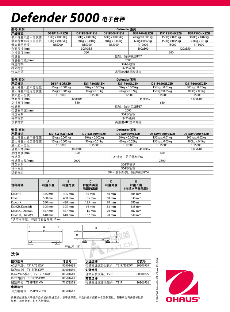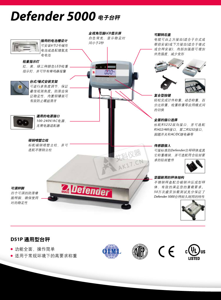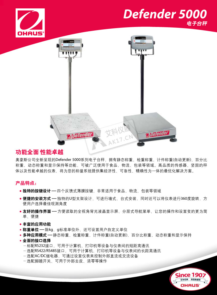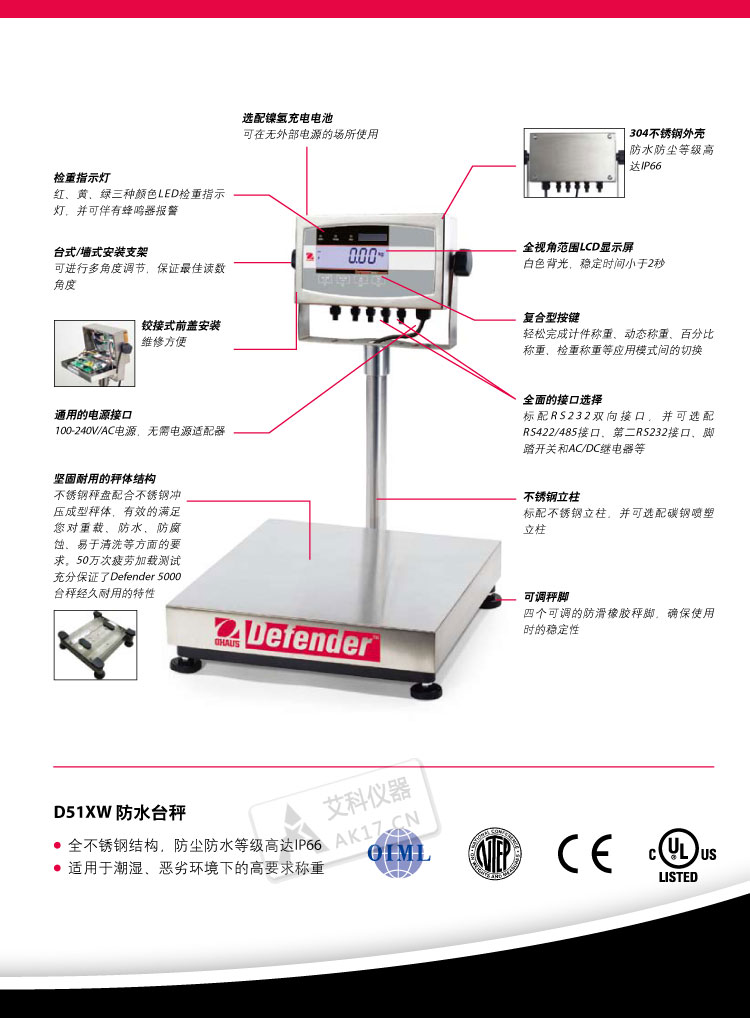奧豪斯電子臺秤D51P150QL2ZH /150kg ABS高強度塑料外殼儀表 不銹鋼秤