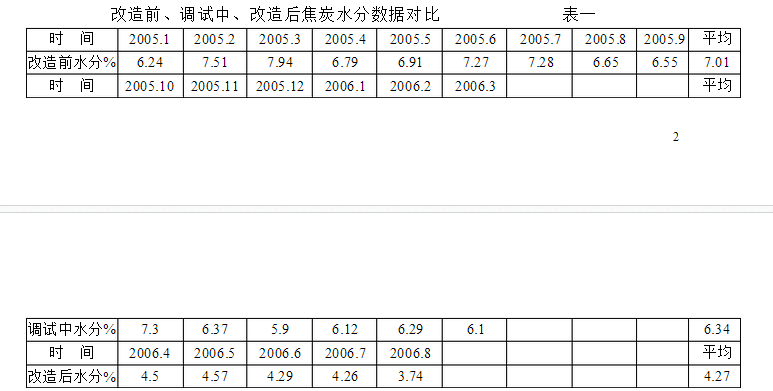 ①、改造后熄焦時間降低了35秒,水分用量是原來的4/5; ②、焦炭水分降低了2-3%。
