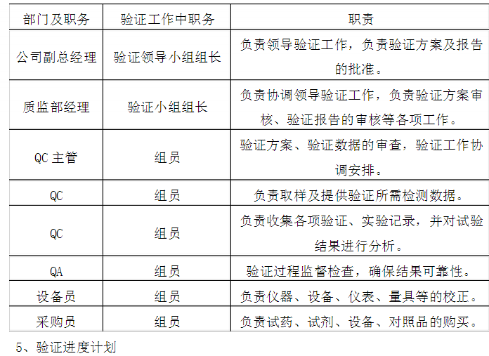 本標準適用于快速水分測定方法的驗證。 4、驗證*導小組成員及職責