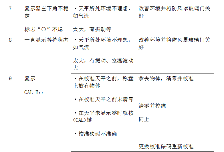 將標準砝碼放到稱盤中心位置,天平顯示CAL„„,等待十幾秒鐘后,顯示標準砝碼的重量。此時,移去砝碼,天平顯示回零,表示校準結束,可以進行稱量了。 如天平不回零,可再重復進行一次校準工作。 ◎ 稱量: