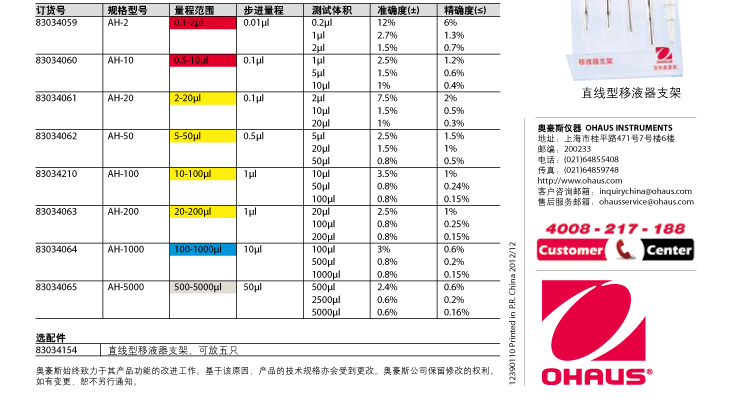 ● 特殊高強度原材料,使移液器堅固耐用,并可整支高溫高壓滅菌